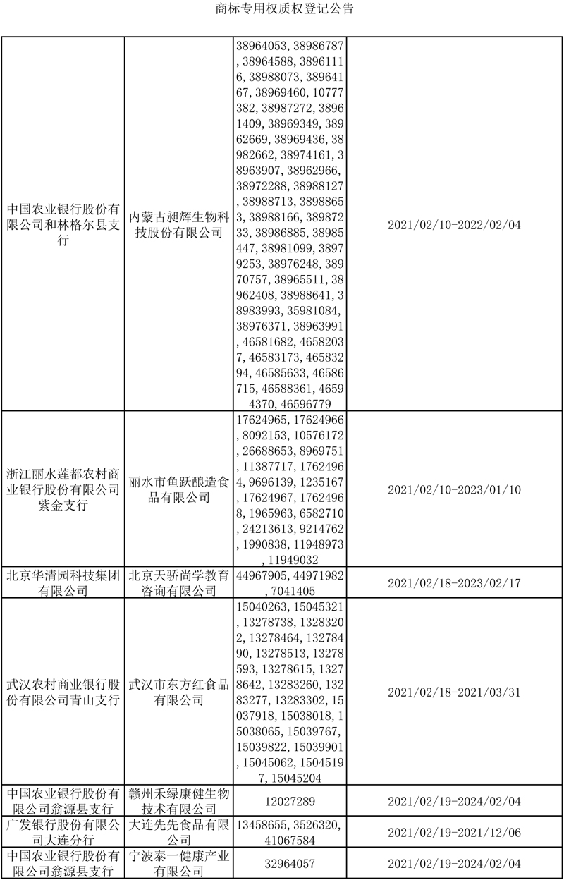 质权人名称 出质人名称 出质商标注册号 质权登记期限